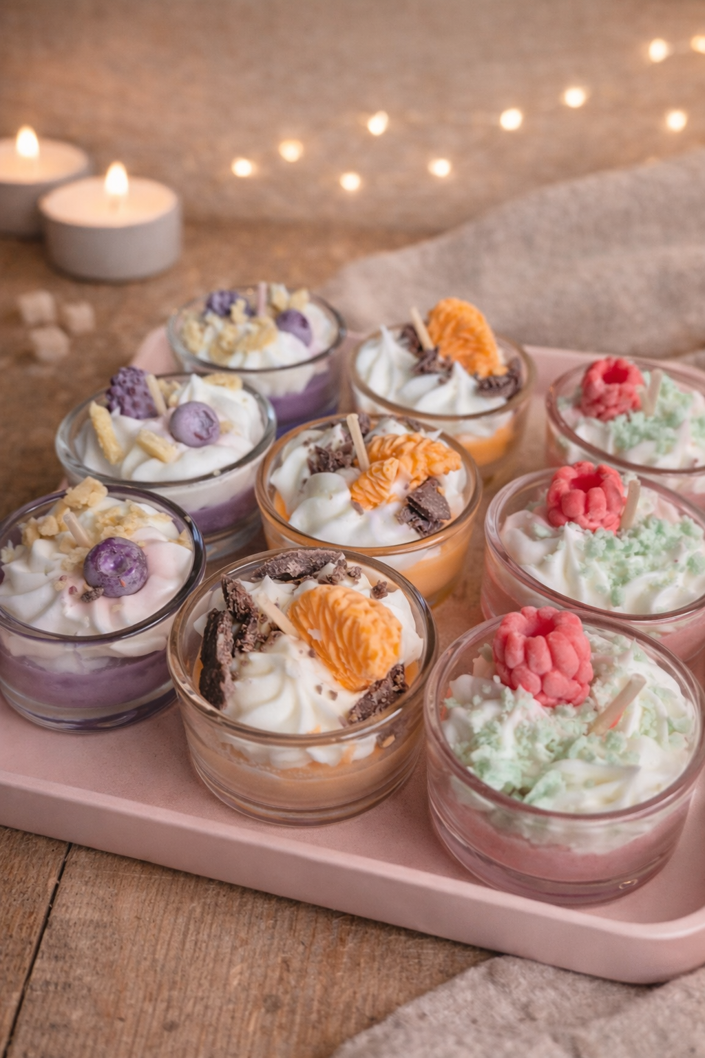 Creëer een warme en sfeervolle uitstraling in huis met deze unieke set van 3 handgemaakte waxinelichtjes van 100% sojawas. Elk waxinelichtje is afgewerkt met romige whipped wax en decoratief vormgegeven met een andere vrucht, waardoor ieder lichtje zijn eigen kleur en karakter heeft.